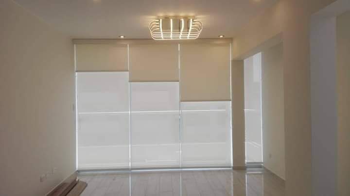 Este nuevo sistema de Cortina Roller Doble te permite tener privacidad total y cuando lo deseas tienes iluminacion total, por que esta elaborado con un soporte especial en forma de corazon o si desea doble soporte al techo, ideal para ambientes de amplio espacio y para su Dormitorio y Sala.
